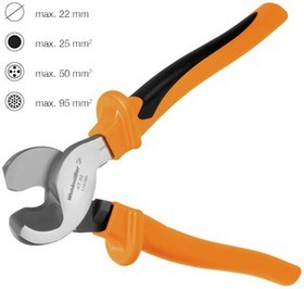 Инструмент предназначен для резки медных и алюминиевых проводников. Не подходит для стальных проводов, кабелей, армированных сталью, алюминиевых сплавов и холоднотянутых медных проводников!